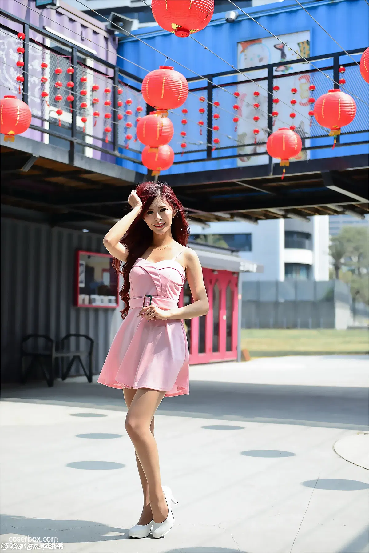 街拍丝足 NO.155 高萱 粉色连衣短裙丝袜高跟美腿 [82P 103.3MB]